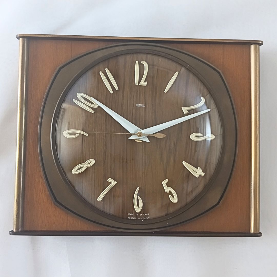 金属加工と力学を意味する名の通り、真鍮や木材を組み合わせた上品なデザインで、1980年代に幕を閉じた今も、その美しい佇まいはヴィンテージクロックの代表格として高い人気を誇ります。